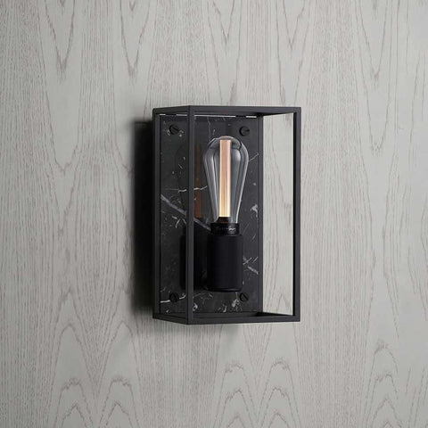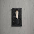 CAGED Wall / Medium is a medium-sized wall lamp, perfect for a variety of applications, combining elegance and functionality. Featuring a matte black metal frame, this lamp comes with a black or white marble panel, offering exquisite contrast and a luxurious look.
