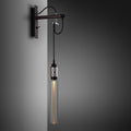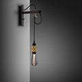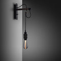 The wall lamp is made of solid metal with matt rubber details. The base is powder coated, available in stone or graphite. The length of the pendulum can be adjusted to your preference and can be hung from a solid metal hook.