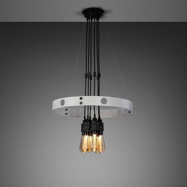 HERO Light ist ein skulpturaler Kronleuchter mit dramatischer Ausstrahlung, der von Buster + Punch entworfen wurde, um das Herzstück eines jeden zeitgenössischen Raumes zu werden. Gefertigt aus einem 2 mm dicken, pulverbeschichteten Metallring, wird diese Leuchte durch massive Metallpendel mit handgefertigten Rändelungen ergänzt.