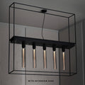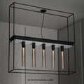 Der Caged Ceiling 5.0 Chandelier von Buster + Punch ist ein großer, rechteckiger Kronleuchter, der aus einem mattschwarzen Metallrahmen und fünf LED Buster Bulb/Tubes besteht. Sein modernes, industrielles Design passt perfekt über einen Esstisch oder eine Bar und setzt einen stilvollen Akzent in jedem Raum. Der Kronleuchter kann direkt an der Decke montiert oder mit zusätzlichen Verlängerungen auf bis zu 1 Meter verlängert werden.