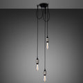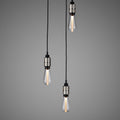 Chaque pendule comprend un crochet en acier massif, qui se visse dans la rosace de plafond en caoutchouc noir et vous permet de régler manuellement la longueur de chute du pendule. Le crochet peut également être retiré et réinstallé dans le plafond, ce qui permet de déplacer le pendule au-dessus de n'importe quel meuble.