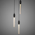 Lustre élégant composé de trois pendentifs. Ce lustre polyvalent vous permet d'ajuster la longueur de chaque pendule pour créer une forme sculpturale unique et personnalisée. Disponibles en acier, laiton ou bronze fumé, les pendules sont fabriqués en acier massif et présentent notre motif caractéristique de coupe en diamant avec des stries croisées.
