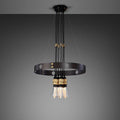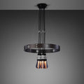 Ce luminaire allie un design industriel contemporain à une polyvalence fonctionnelle. Les 6 pendentifs en métal peuvent être positionnés sur l'anneau ou suspendus au centre, offrant ainsi une liberté esthétique totale.
