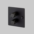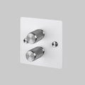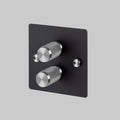 Interruttore dimmer 2G in metallo massiccio, rifinito con vernice PU resistente e stabilizzata ai raggi UV. Viene fornito con un kit di dettagli in metallo massiccio a scelta, che comprende 2 pulsanti dimmer e viti per monete.