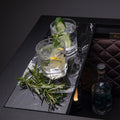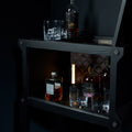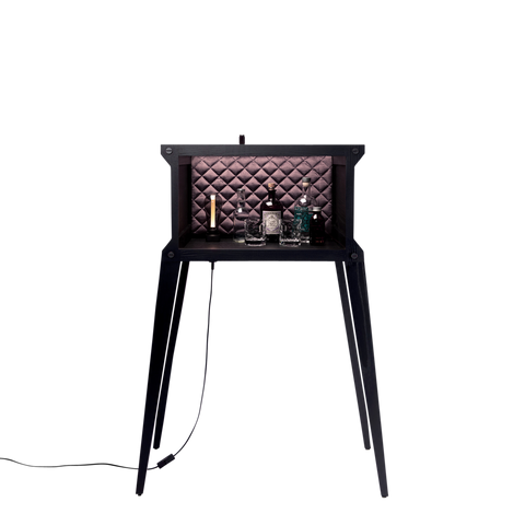 Partea superioară, prevăzută cu o suprafață robustă din granit, este perfectă pentru prepararea băuturilor rafinate. Panoul din mătase gri închis și accentele din bronz fumuriu completează estetica modernă, în timp ce iluminarea subtilă oferă ambianța perfectă pentru o seară exclusivistă.